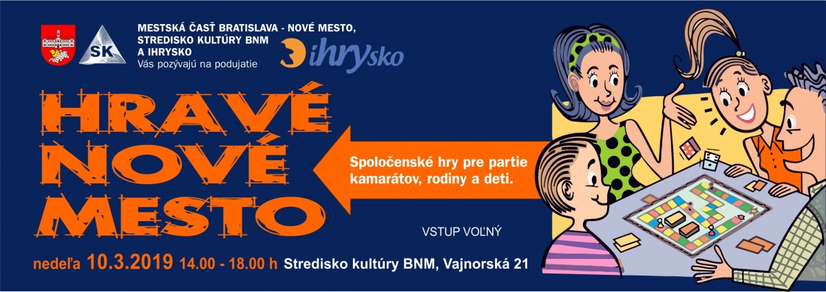 21.02.2019 - Mestská časť Bratislava – Nové Mesto a Stredisko kultúry Vajnorská vás pozývajú na tradičné popoludnie plné hier HRAVÉ NOVÉ MESTO.