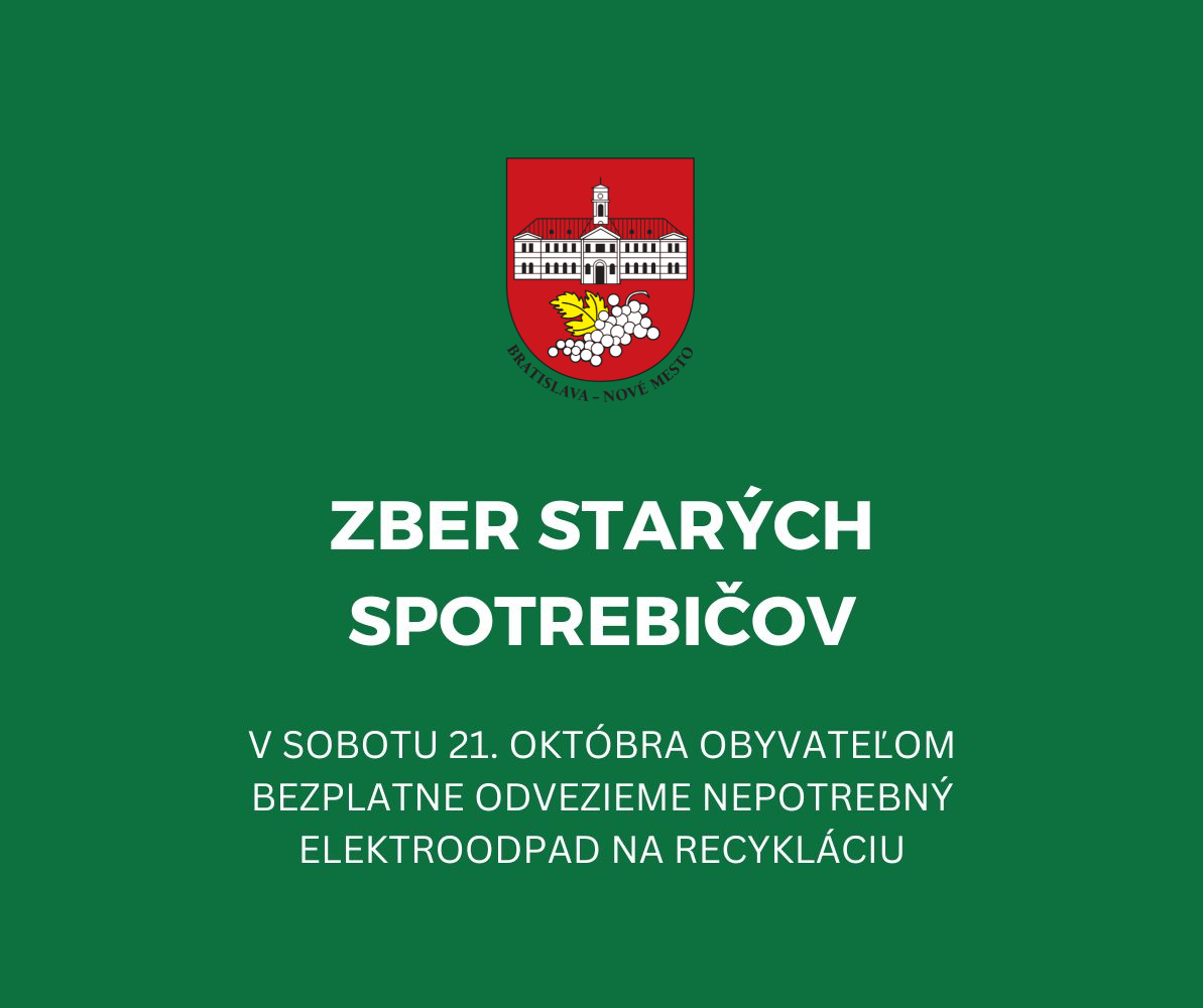sobotu 21. októbra 2023 obyvateľom Nového Mesta bezplatne odvezieme nepotrebný elektroodpad na ekologickú recykláciu.
