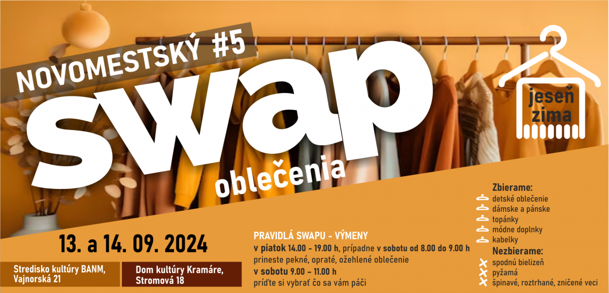 Podľa informácií Štatistického úradu Slovenskej republiky sa na území Hlavného mesta SR Bratislavy v roku 2021 vyhodilo vyše 140 ton šatstva a ďalších takmer 60 ton textílií. Oblečenie tak nielenže končí zbytočne v koši, ale produkty tzv. fast fashion (rýchla móda) škodia životnému prostrediu už pri samotnej výrobe. Aj to sú dôvody, pre ktoré sa mestská časť Bratislava-Nové Mesto spoločne s partnermi Ekocharita a Únia miest Slovenska rozhodli usporiadať Novomestský SWAP oblečenia.