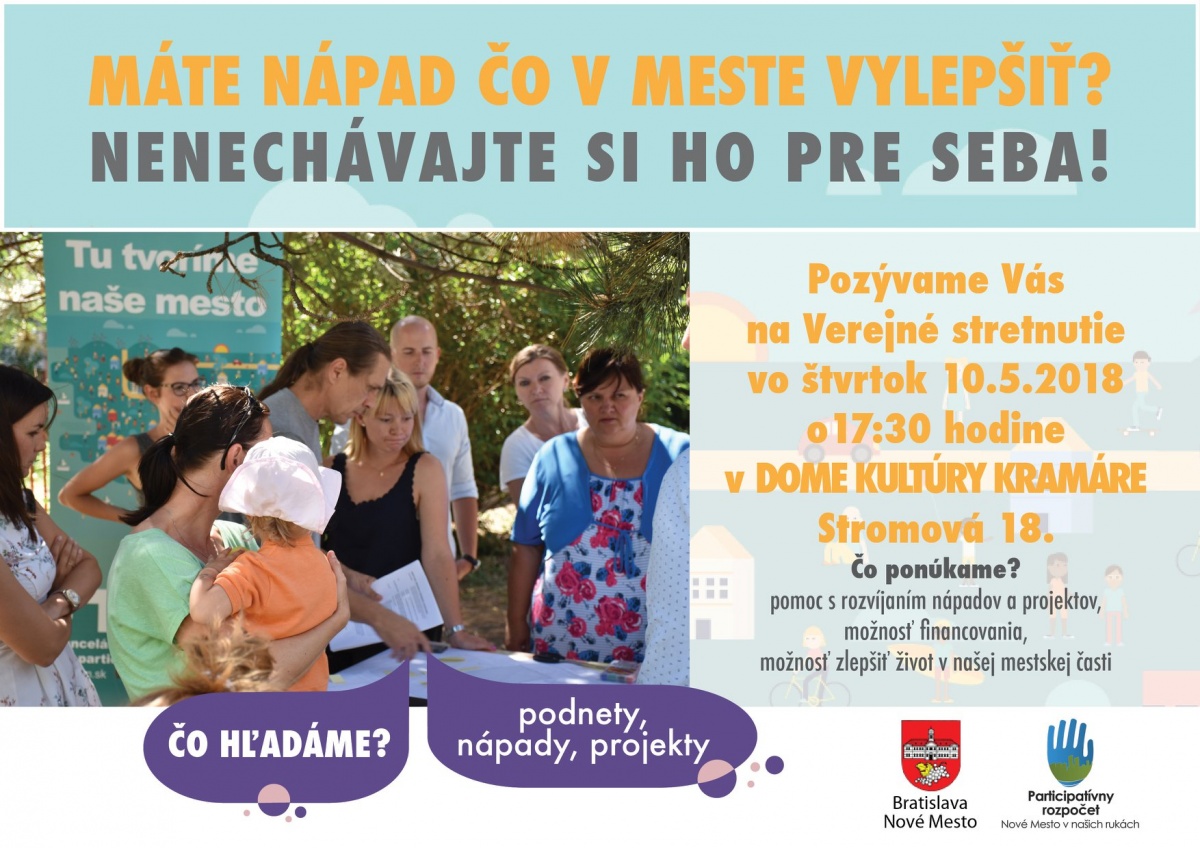 10.05.2018 - Máte nápad ako zlepšiť verejné služby mesta alebo jeho prostredie? Podporiť aktivity vašej miestnej komunity alebo vám chýba niečo v okolí vášho bydliska?