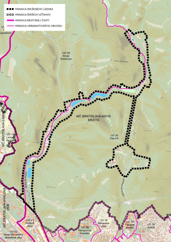 Riešené územie má výmeru 102 hektárov. Zasahuje do urbanistických obvodov Hrubý Drieňovec a Kamzík, charakterizovaných ako „lesné plochy“. Zahŕňa rekreačný priestor Horná Mlynská dolina (údolie rieky Vydrice od Červeného mosta po bývalé Štátne sanatórium) a rekreačný priestor Kamzík s televíznou vežou, ktoré sú vzájomne prepojené lanovkou. Dôležitou súčasťou územného plánu zóny bude riešenie dopravy, možností parkovania, cyklotrás a pohybu chodcov.