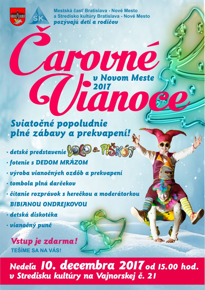 Deti a rodičia! Pozývame vás na ČAROVNÉ VIANOCE 2017 V NOVOM MESTE. V nedeľu 10. decembra v Stredisku kultúry na Vajnorskej