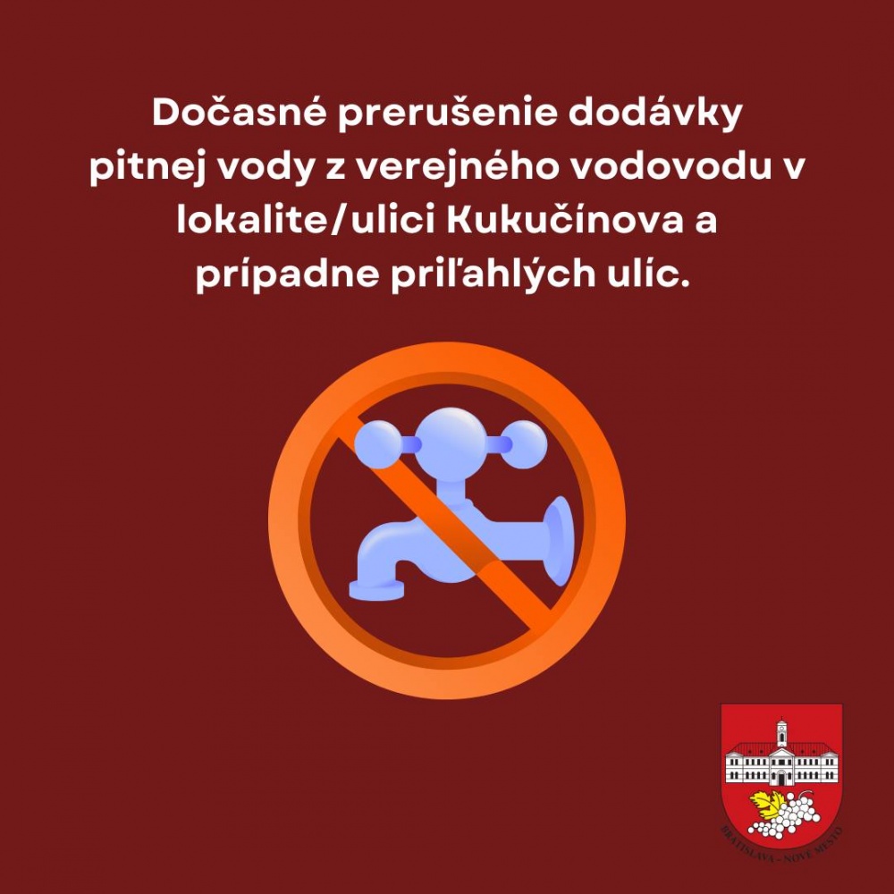 Dočasné prerušenie dodávky pitnej vody - Kukučínova
