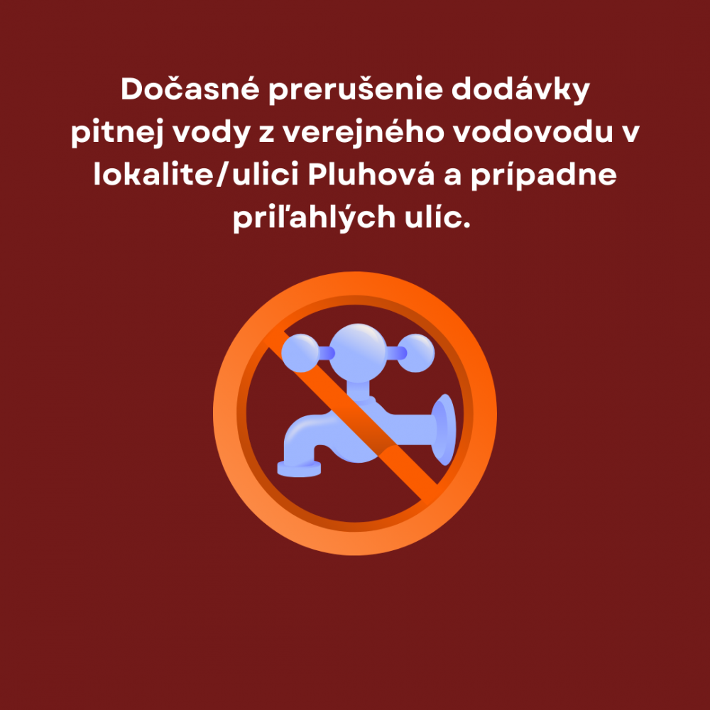 Dočasné prerušenie dodávky pitnej vody z verejného vodovodu v lokalite/ulici Pluhová a prípadne priľahlých ulíc