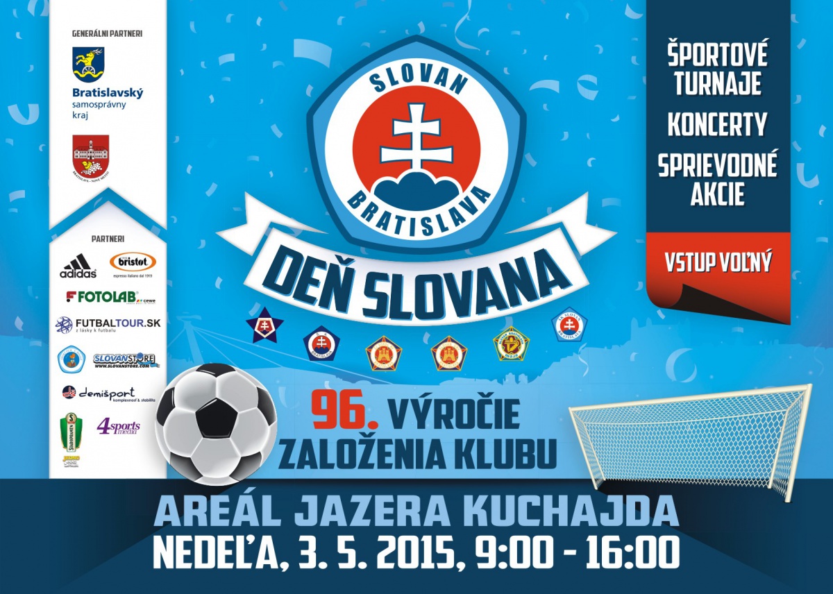 30.04.2015 - Najslávnejší slovenský futbalový klub ŠK Slovan Bratislava oslavuje 96. výročie svojho založenia. Pri tejto príležitosti sa v nedeľu 3. mája 2015 bude v areáli novomestského prírodného kúpaliska Kuchajda konať DEŇ SLOVANA. Mestská časť Bratislava - Nové Mesto je generálnym partnerom tohto podujatia.