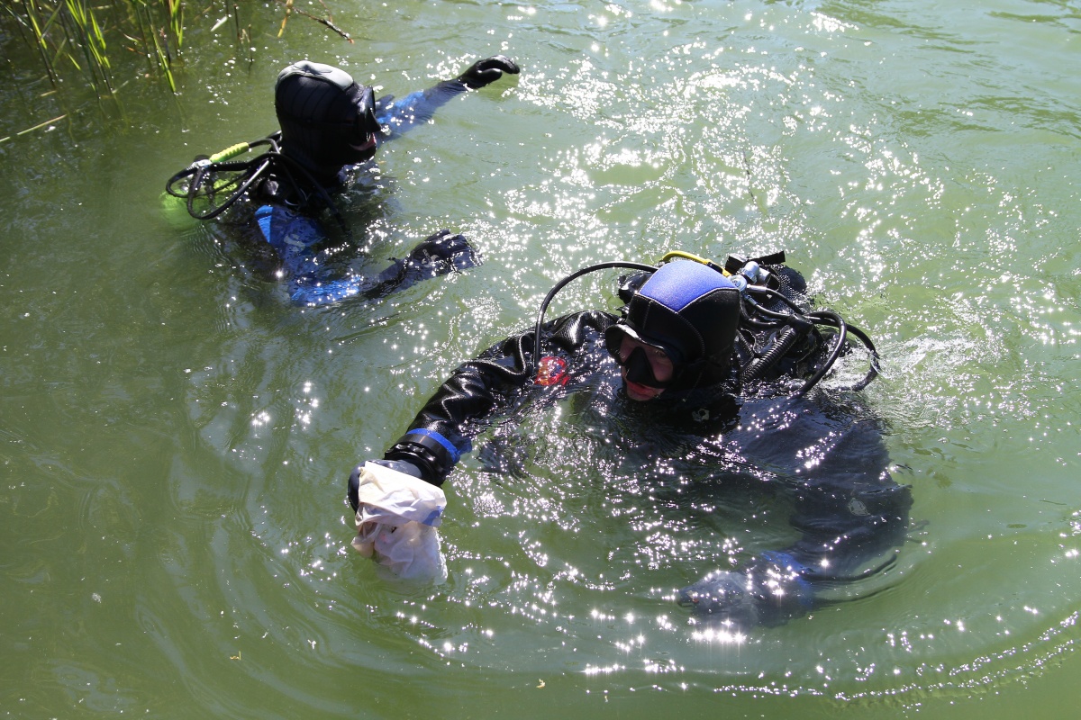 • Potápačský prieskum dna jazera do hĺbky 3 metrov, s označením nájdeného odpadu bójami.