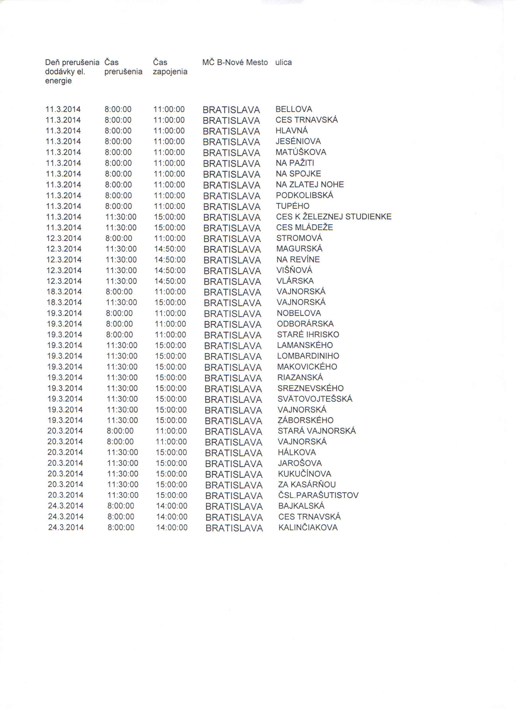 10.03.2014 - Mestská časť Bratislava - Nové Mesto oznamuje, že Západoslovenská distribučná a.s. zverejnila termíny odstávky elektriny na najbližšie obdobie.