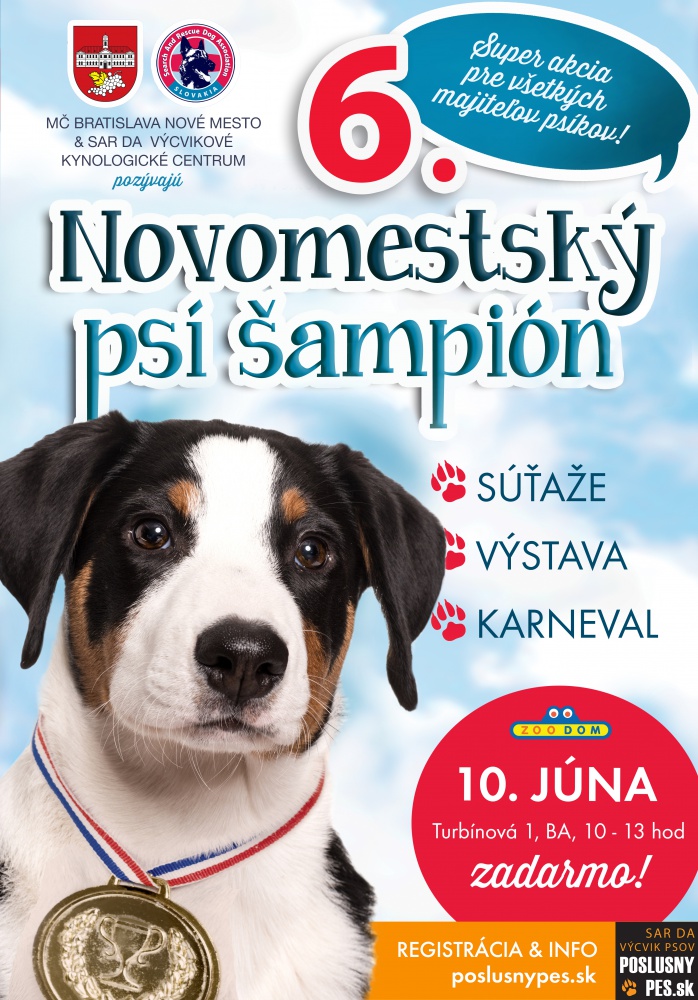 29.05.2017 - Majitelia a milovníci psíkov, pozor! Už o pár dní, v sobotu 10. júna, vás spolu s Výcvikovým a kynologickým centrom SAR DA Slovakia pozývame na 6. ročník tradičnej súťaže Novomestský psí šampión.