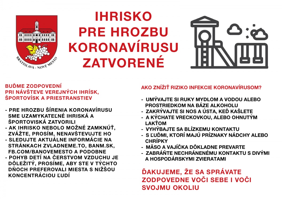 13.03.2020 - Pre hrozbu šírenia koronavírusu sme uzamykateľné ihriská a športoviská v Novom Meste zatvorili. Týka sa to aj areálu Kuchajda a parku Jama.