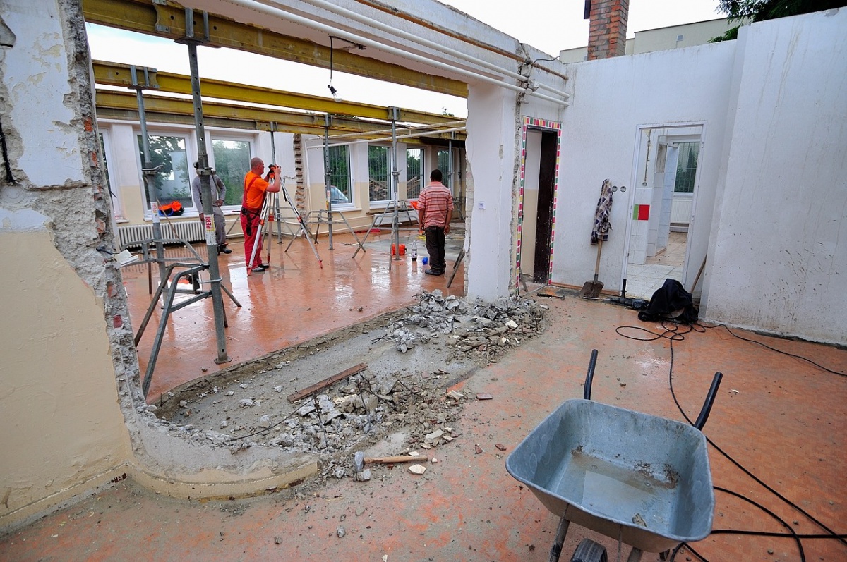 09.07.2014 - Mestská časť Bratislava - Nové Mesto modernizuje ďalšie svoje škôlky a rozširuje ich kapacity. Počas letných prázdnin prechádza veľkými zmenami Materská škola na Jeséniovej ulici (na snímke). Vďaka nadstavbe získa priestory pre dve nové triedy, budova dostane novú strechu, nové sociálne zariadenia a bude aj zateplená. Ďalšia v poradí je Materská škola Na Revíne, ktorú taktiež čaká výmena strechy a zateplenie.