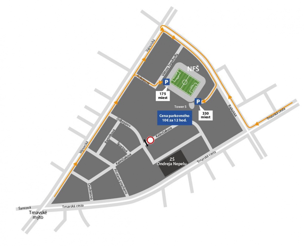 Mapka vjzadov na parkovisko pod Národným futbalovým štadiónom je v obrázku.