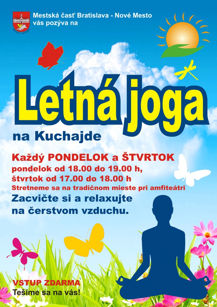 22.06.2015 - Aj tohtoročné leto v bratislavskom Novom Meste bude v znamení jogy. Mestská časť Bratislava – Nové Mesto už piaty rok po sebe organizuje v rámci podujatí letnej sezóny LETNÚ JOGU NA KUCHAJDE.