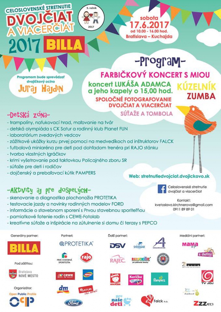 Vidieť toľko dvojčiat a trojčiat z celého Slovenska sa naskytne len raz do roka – dvojčatá a trojčatá z Bratislavy, ale aj z Humenného, Skalice, či z Popradu zavítajú v sobotu 17. júna 2017 do bratislavského Nového Mesta na Kuchajdu.