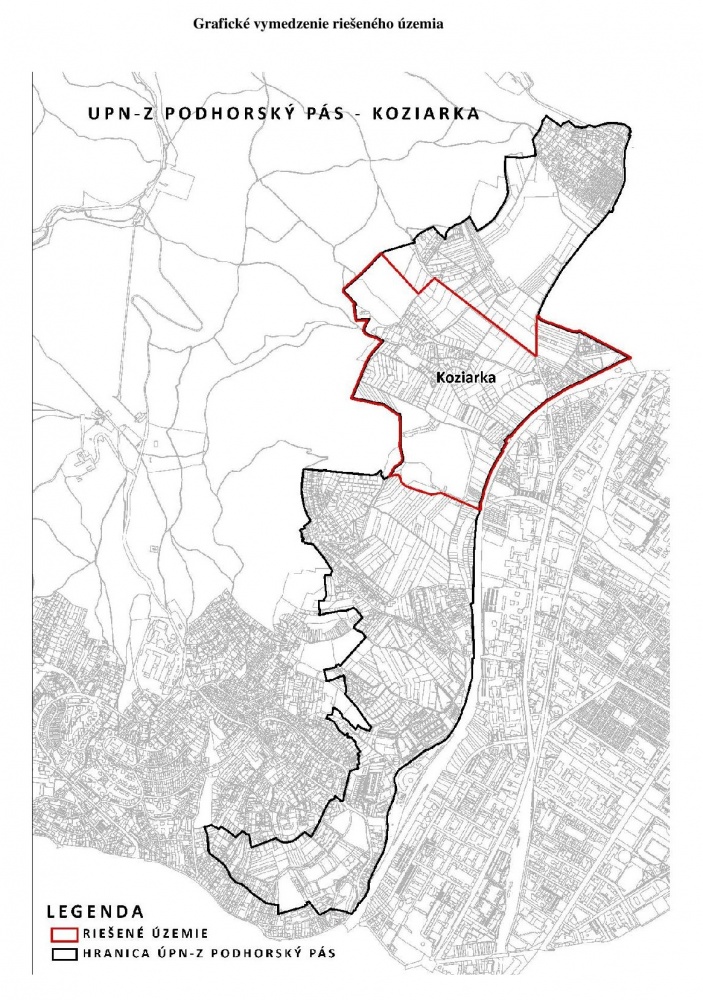 Hranice riešeného územia „Územného plánu zóny Podhorský pás - Koziarka“ v Mestskej časti Bratislava-Nové Mesto, k. ú. Nové Mesto, sú vymedzené v zmysle grafickej prílohy (viď obrázok).