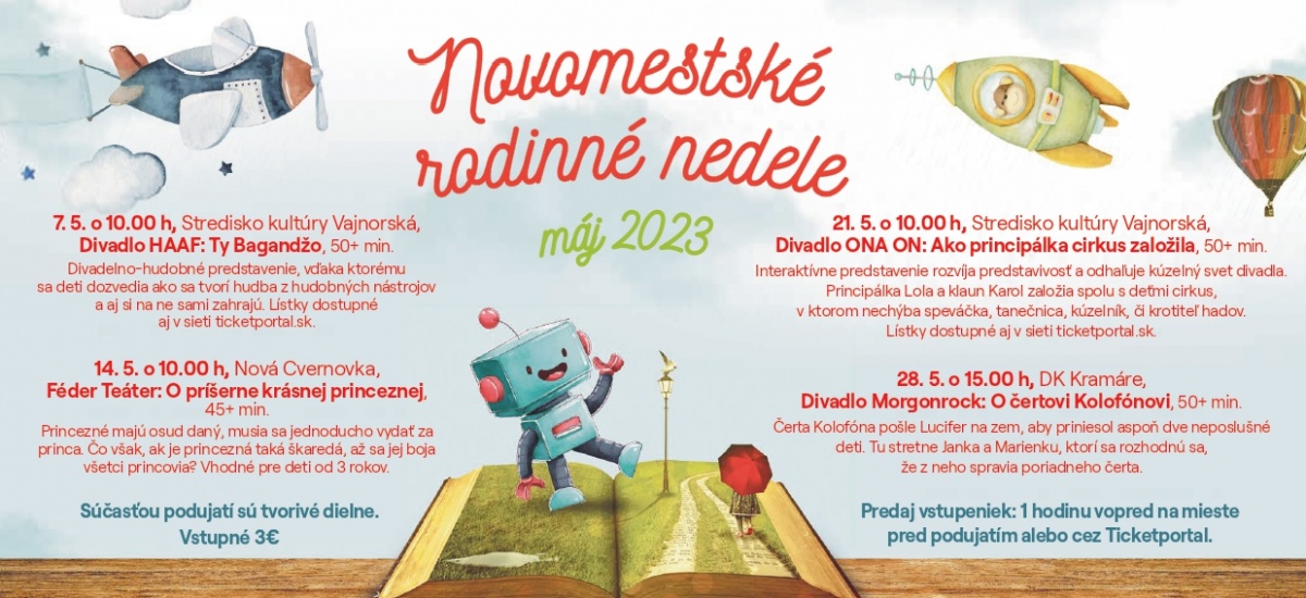 21. 5.  o 10.00 h, Stredisko kultúry Vajnorská, Divadlo ONA ON: Ako principálka cirkus založila, 50+ min.