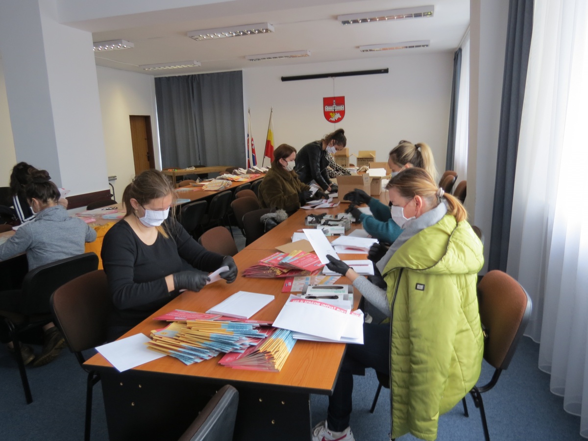 Jedna z prvých úloh bola vybaviť seniorov ochrannými prostriedkami, aby si tí, ktorí sú mobilní, mohli vybaviť aspoň nevyhnutné veci. Po ušití potrebného počtu rúšok sa 30. marca zišla prvá skupina dobrovoľníkov pri balení obálok. Nachystali do nich letáky s informáciami o možnostiach prevencie a ochrany zdravia, a samozrejme, pribalili ochranné rúška a rukavice. V nasledujúcom dni už dobrovoľníci začali roznášať adresné zásielky seniorom.