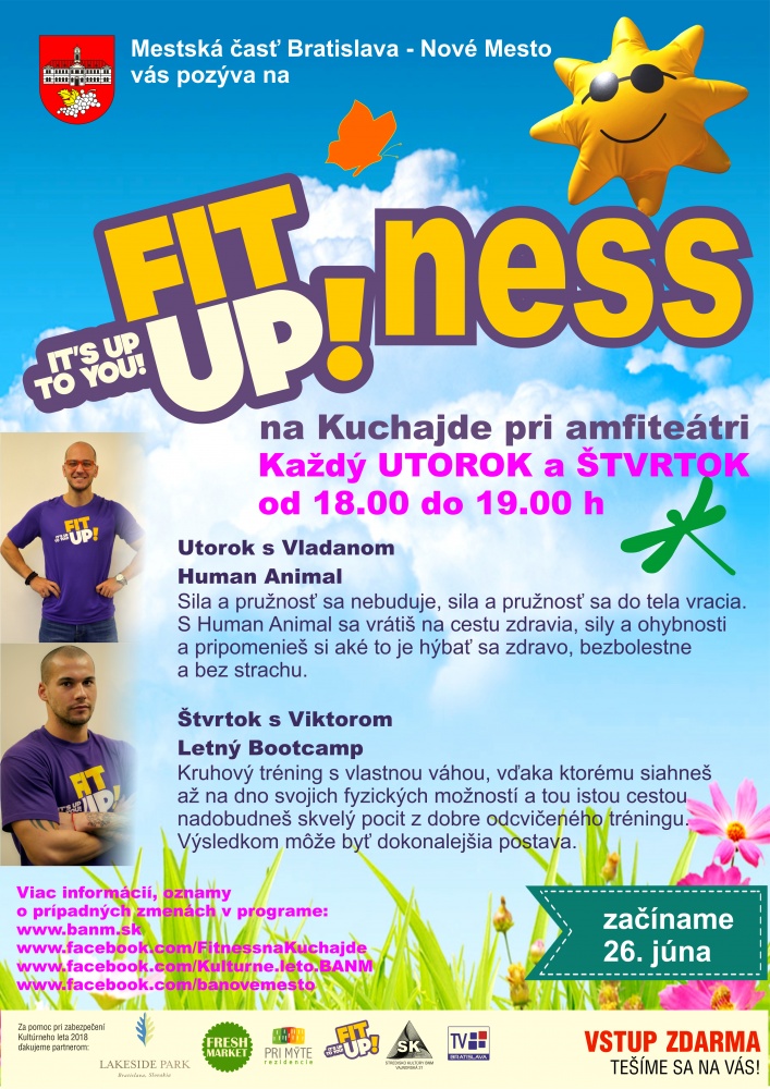 25.06.2018 - Kultúrne leto 2018 v Novom Meste je otvorené a v rámci neho sme pre vás pripravili opäť viacero pohybových aktivít. Už v utorok 26. júna štartuje projekt LETNÝ FITNESS NA KUCHAJDE. Dvakrát do týždňa sa vám budú venovať tréneri z fitness centra FIT UP! – v utorok Vladan a vo štvrtok Viktor (s výnimkou tohto týždňa, kedy si termíny vymenia). Cvičí sa vždy o 18.00 do 19.00 hod. pri amfiteátri.