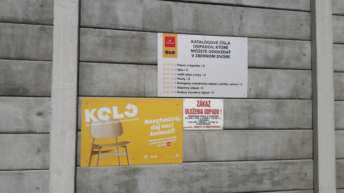 Na zbernom dvore Rača je zároveň zriadené aj zberné miesto pre projekt KOLO, kde môžete počas otváracích hodín odovzdať ešte použiteľné predmety a veci, ktoré môžu poslúžiť ďalej.