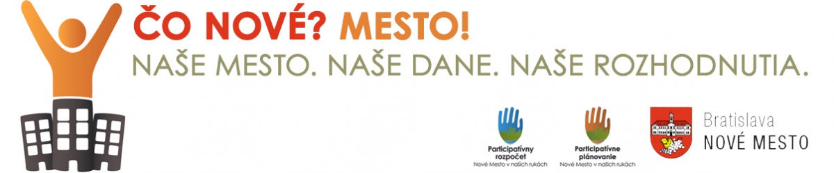 Aj tento rok sa môžu občania bratislavského Nového Mesta aktívne zapojiť do projektu tzv. participatívneho rozpočtu. V rámci neho môžu predkladať občianske projekty a podnety, ktorými chcú skvalitniť život vo svojom okolí. O tom, ktoré projekty získajú peniaze z obecného rozpočtu na rok 2016, rozhodnú budúci rok v hlasovaní a v tzv. verejnom zvažovaní samotní obyvatelia mestskej časti Bratislava – Nové Mesto.