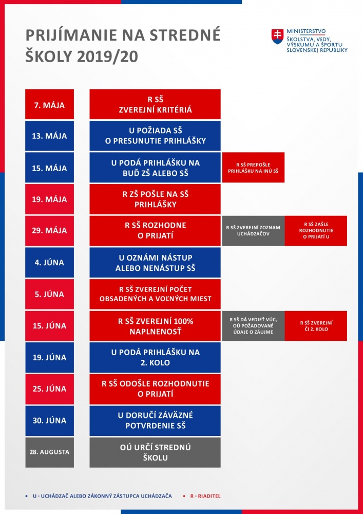 Informáciu o prijatí alebo neprijatí žiaka zverejní stredná škola 29. mája na webe alebo výveske školy podľa výsledkov prijímacieho konania. Ako ďalej informuje rezort školstva, v prípade prijatia škola doručí uchádzačovi rozhodnutie o prijatí cez informačný systém základnej školy, alebo mu odošle naskenované tlačivo e-mailom alebo poštou.