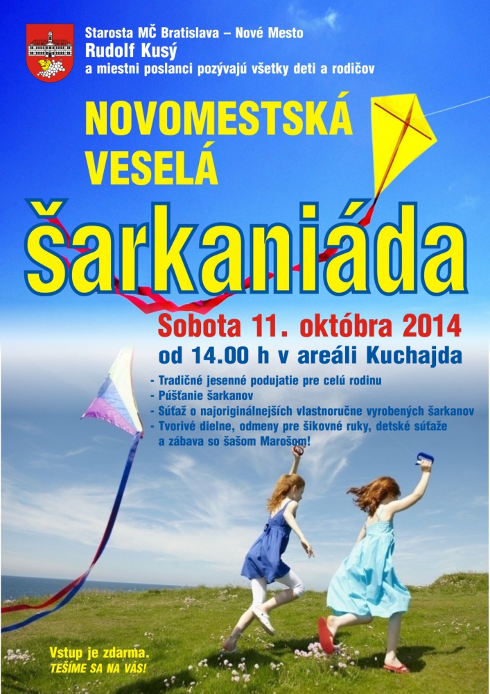 06.10.2014 - Jeseň už tradične patrí šarkanom. Inak tomu nebude ani tento rok. Mestská časť Bratislava – Nové Mesto na október pripravila ďalší ročník NOVOMESTSKEJ VESELEJ ŠARKANIÁDY.