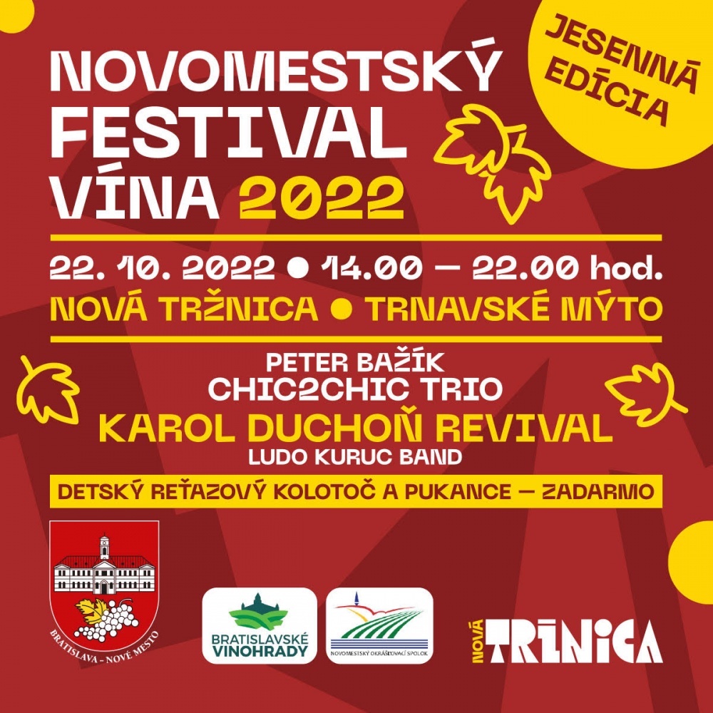 Pozývame vás na jesenný Novomestský festival vína 2022! V sobotu 22. októbra pri Novej tržnici