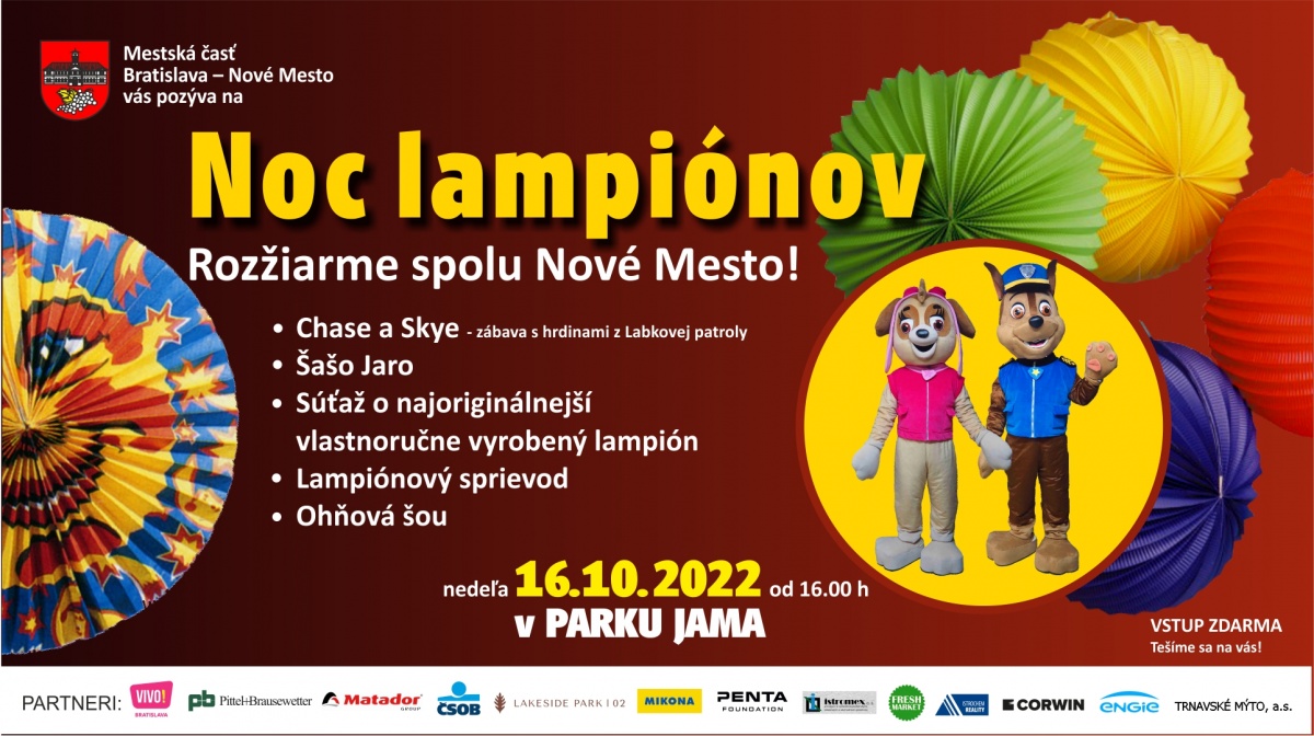 11.10.2022 - Mestská časť Bratislava-Nové Mesto vás pozýva na NOC LAMPIÓNOV 2022!