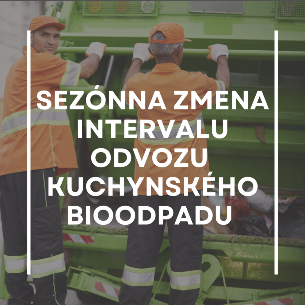 V týždni od pondelka 4. novembra 2024 dôjde k sezónnej zmene intervalu odvozu kuchynského bioodpadu z domácností. Odvoz bude prebiehať jedenkrát za 7 dní. Táto frekvencia potrvá do 29. marca 2025, následne sa bioodpad z domácností začne opäť vyvážať dvakrát týždenne.