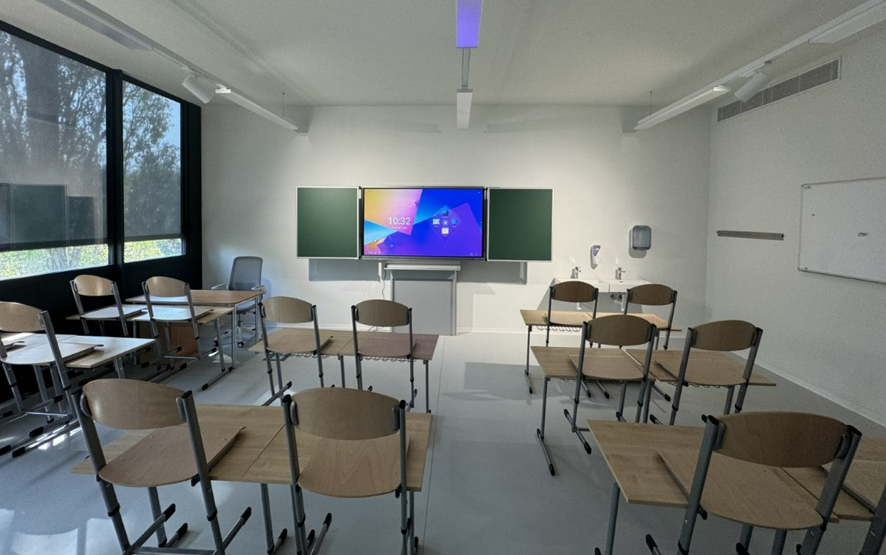 Na tom sme si dali záležať, pretože veríme, že svetlo zohráva pri vyučovacom procese dôležitú úlohu. Použili sme špičkové technické riešenie od rakúskej firmy Zumtobel. V triede sú svetelné senzory, ktoré upravujú množstvo svetla, jeho intenzitu a niektoré ďalšie atribúty automaticky. Je to šikovné a ekonomické riešenie. Navrhnutý systém vie dokonca optimálne meniť farebnú škálu svetla v triede podľa toho, akej činnosti sa deti a učiteľ venujú, alebo akú zónu potrebujú mať osvietenú viac. Ak učiteľ potrebuje, aby sa deti viac sústredili, pomôže mu biele svetlo, ak chce uvoľnenejšiu atmosféru, použije viac žltého svetla. Je to zaujímavý systém, s ktorým sa dá veľmi pekne pohrať. Medzi prvými sme v praxi aplikovali normu STN EN 12464-1:2023 v súlade s novelizovanou normou.
