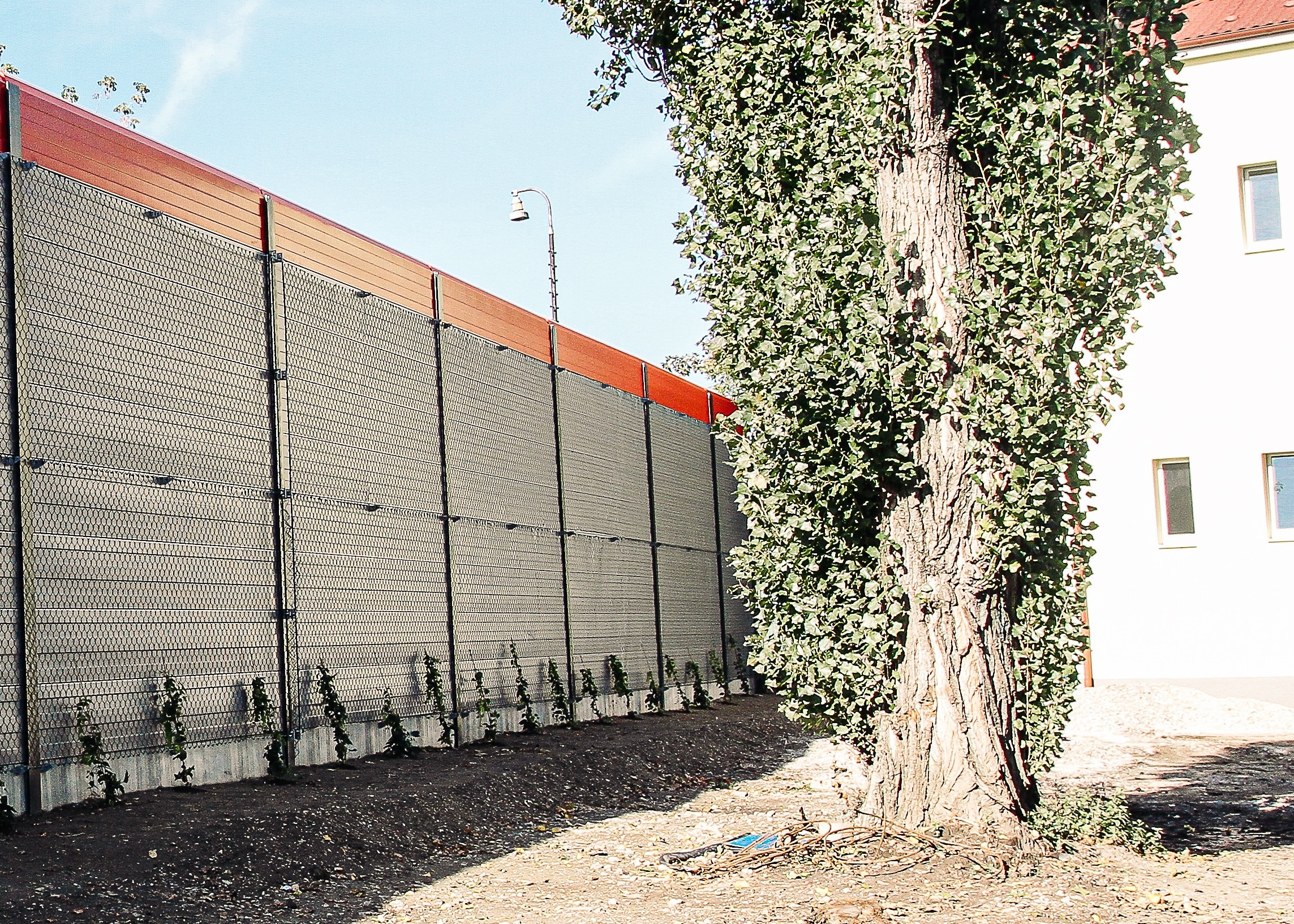 Skôr ako nový pavilón dala mestská časť do užívania na ZŠ s MŠ Odborárska protihlukovú stenu. Má dĺžku 120 metrov a výšku 5 metrov. Redukciu hluku zabezpečujú bezúdržbové hliníkové dielce. Z vnútornej strany je zabudovaná sieť na popínavé rastliny, ktoré funkciu steny ešte podporia. Na zeleň sa v tomto prípade tiež kladú vysoké nároky. Musí plniť ekostabilizačnú, environmentálnu, izolačnú aj estetickú funkciu. Zvolené boli: Aktinídia význačná (známa aj ako mini kiwi), Plamienok horský a Pavinič trojlaločný.