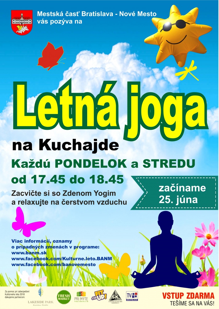 22.06.2018 - Už v pondelok 25. júna štartuje tradičná LETNÁ JOGA NA KUCHAJDE, ktorá je už ôsmy rok po sebe neodmysliteľnou súčasťou pohybových aktivít letnej sezóny v Novom Meste.