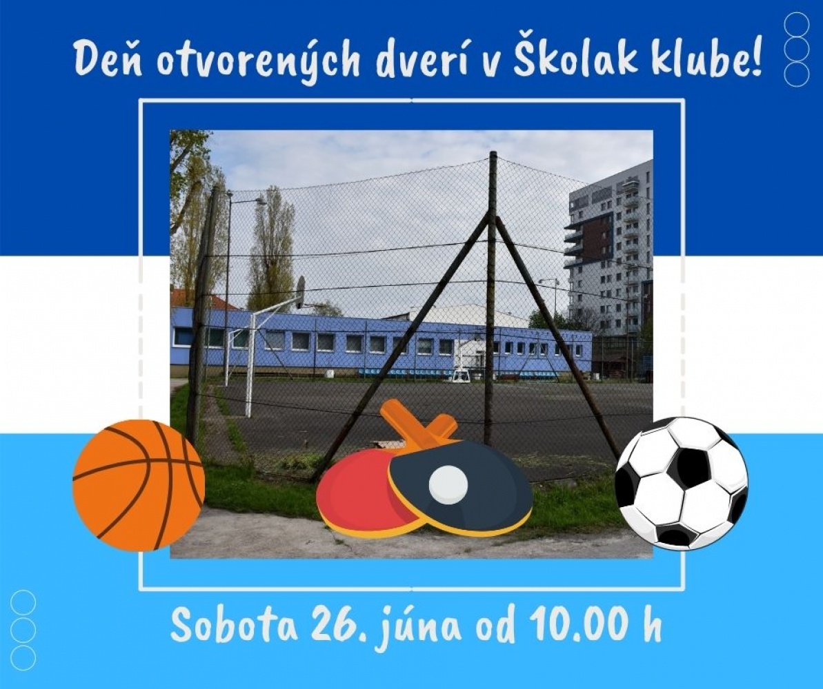 Prosíme návštevníkov dňa otvorených dverí v Školak klube o dodržiavanie všetkých protipandemických bezpečnostných a hygienických podmienok, riaďte sa, prosím, pokynmi organizátora.