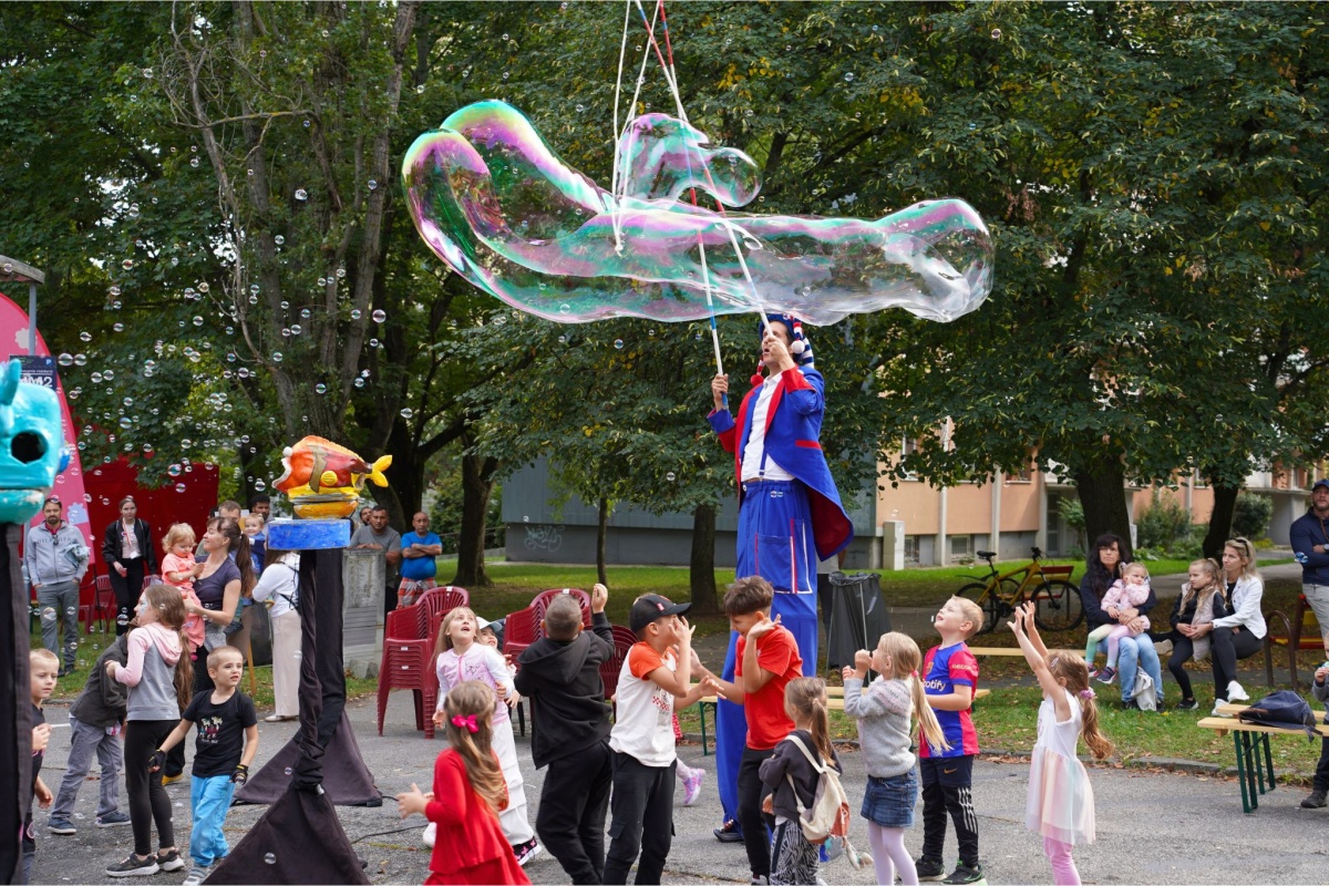 29.09.2025 - Uplynulý víkend patril v Novom Meste hodovej slávnosti, ktorá bola spojená aj s oslavou výročia posvätenia kostola na Teplickej ulici. Práve preto sa podujatie konalo v priestore tohto vnútrobloku, kam výborne sadlo a priniesli sme tak program do ďalšej štvrte našej mestskej časti. Aj počasie akcii cez víkend prialo, čo umocnilo celkovú atmosféru – hrejivú, veselú a plnú radosti.