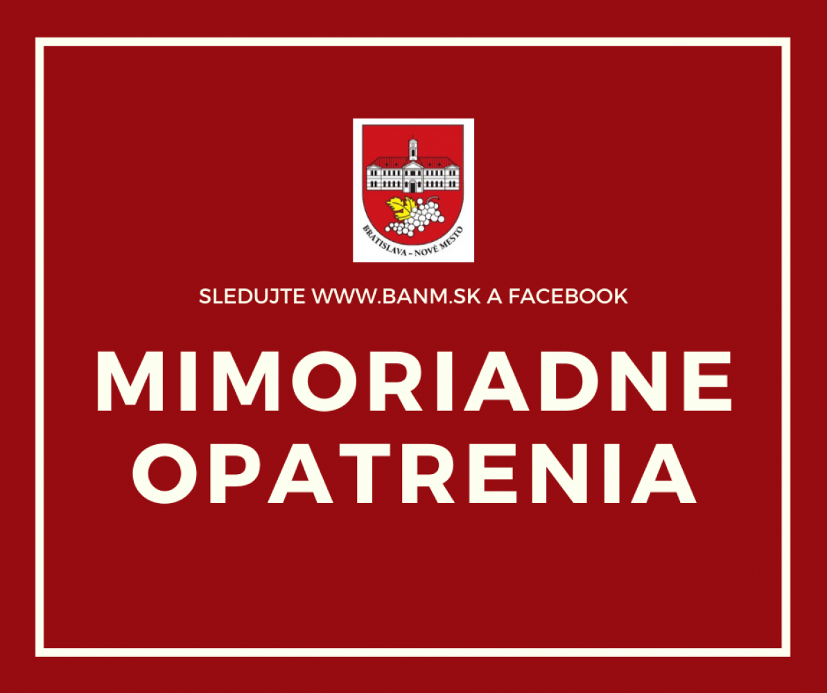 Poskytovatelia zdravotnej starostlivosti, ktorí poskytujú ústavnú zdravotnú starostlivosť v Bratislave vo všetkých mestských častiach a v okresoch Senec a Pezinok, sú povinní zabezpečiť zákaz návštev na všetkých lôžkových oddeleniach s výnimkou návštev kňazov za účelom podávania sviatosti pomazania chorým a paliatívnych návštev.