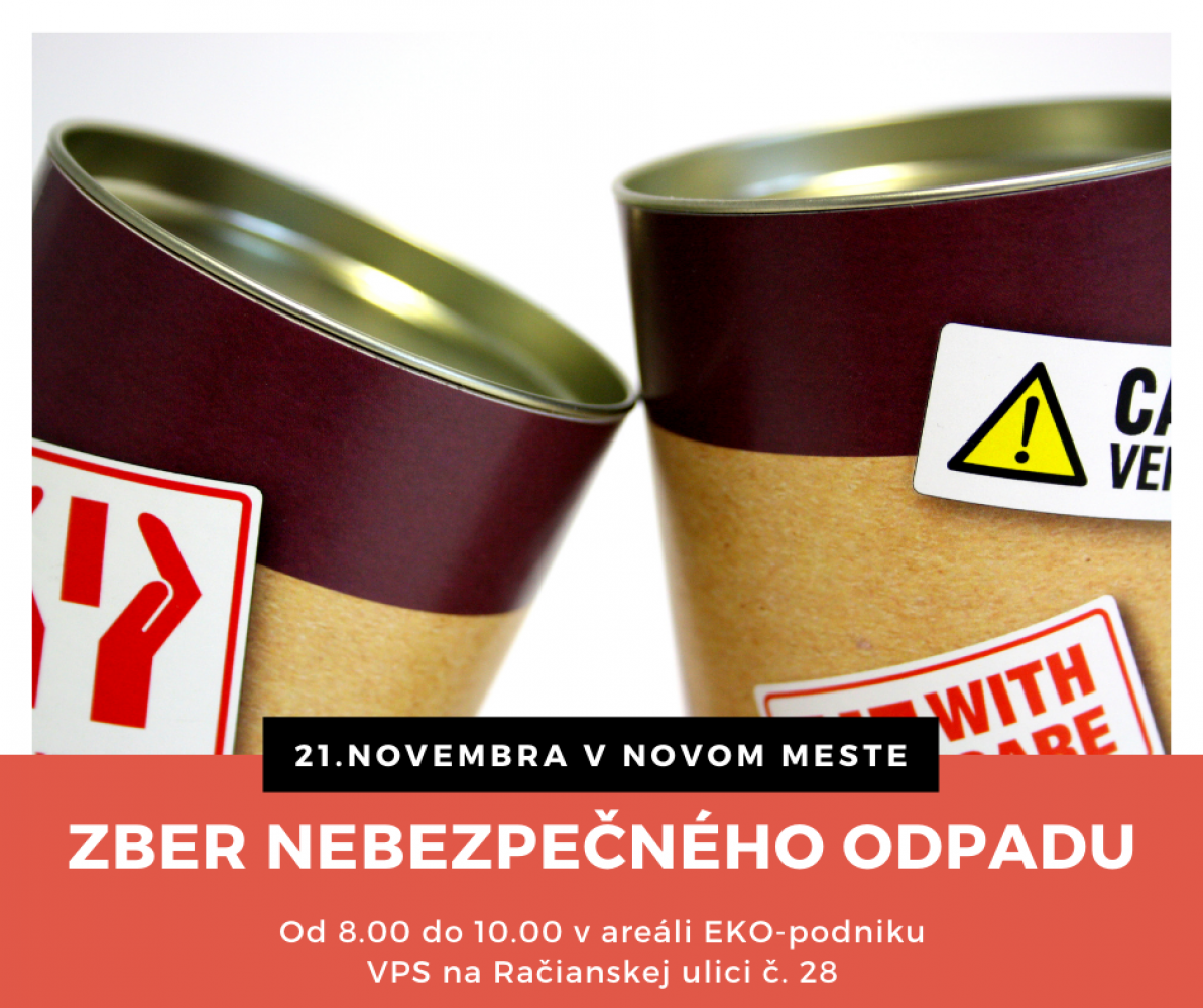 V sobotu 21. novembra bude v Novom Meste zber odpadu s obsahom nebezpečných látok