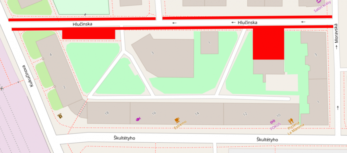 V utorok 21. 7. 2020 bude od 7.00 do 15.00 h zákaz parkovania na úseku: Hlučínská ulica (viď mapka - medzi Kukučínovou a Moravskou ulicou)