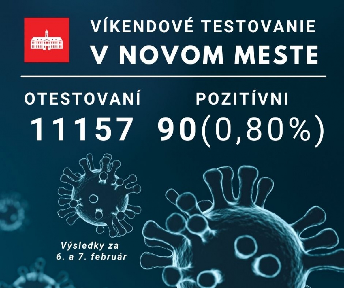 07.02.2021 - Máme za sebou ďalšie víkendové testovanie v Novom Meste. Naše mobilné odberové miesta sú už zatvorené. Ďakujeme všetkým zdravotníkom, dobrovoľníkom, vojakom, kolegom z úradu a EKO-podniku, vďaka ktorým všetko opäť prebehlo na jednotku. Dobrou správou je, že počet pozitívnych testov dosiahol len 0,80 %, čo je pre porovnanie menej ako pri víkendovom testovaní pred dvomi týždňami (vtedy 0,86 %).