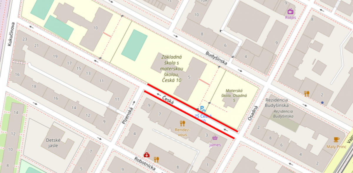 Vo štvrtok 30. 7. 2020 bude od 7.00 do 15.00 h zákaz parkovania na úseku: ČESKÁ ULICA (medzi Osadnou a Plzenskou - viď mapka)