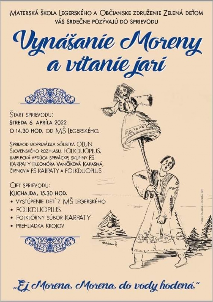 Vynášanie Moreny a vítanie jari! Príďte sa v stredu na Kuchajdu spolu s našimi škôlkarmi rozlúčiť so zimou