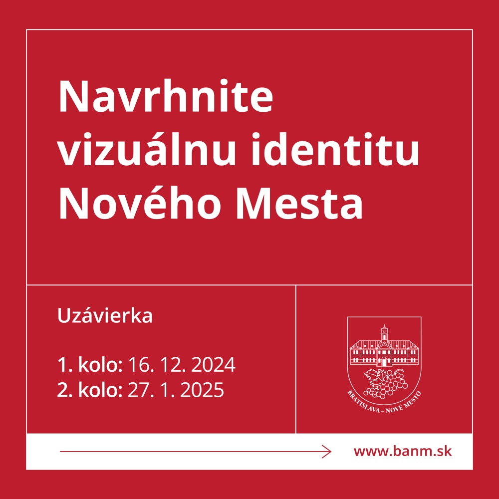 Mestská časť Bratislava-Nové Mesto vyhlasuje výzvu na predkladanie ponúk na tvorbu novej vizuálnej identity a grafické služby na roky 2025 a 2026. Výzva je určená pre profesionálky a profesionálov z oblasti komunikačného dizajnu, fyzické aj právnické osoby.