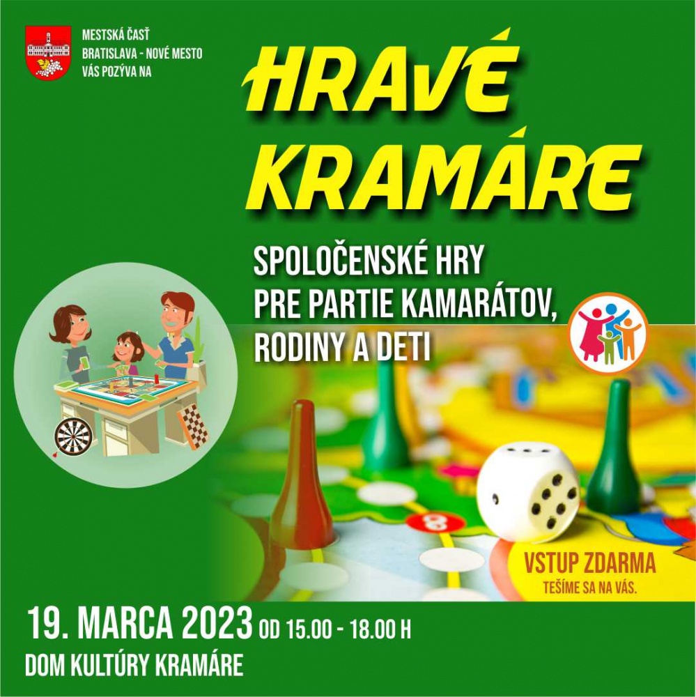 Všetkým, ktorí sa radi hrajú, bude patriť nedeľa 05. marca 2023 od 10.00 h do 13.00 h v Stredisku kultúry Vajnorská a aj nedeľa 19. marca 2023 od 15.00 h do 18.00 h v Dome kultúry Kramáre.